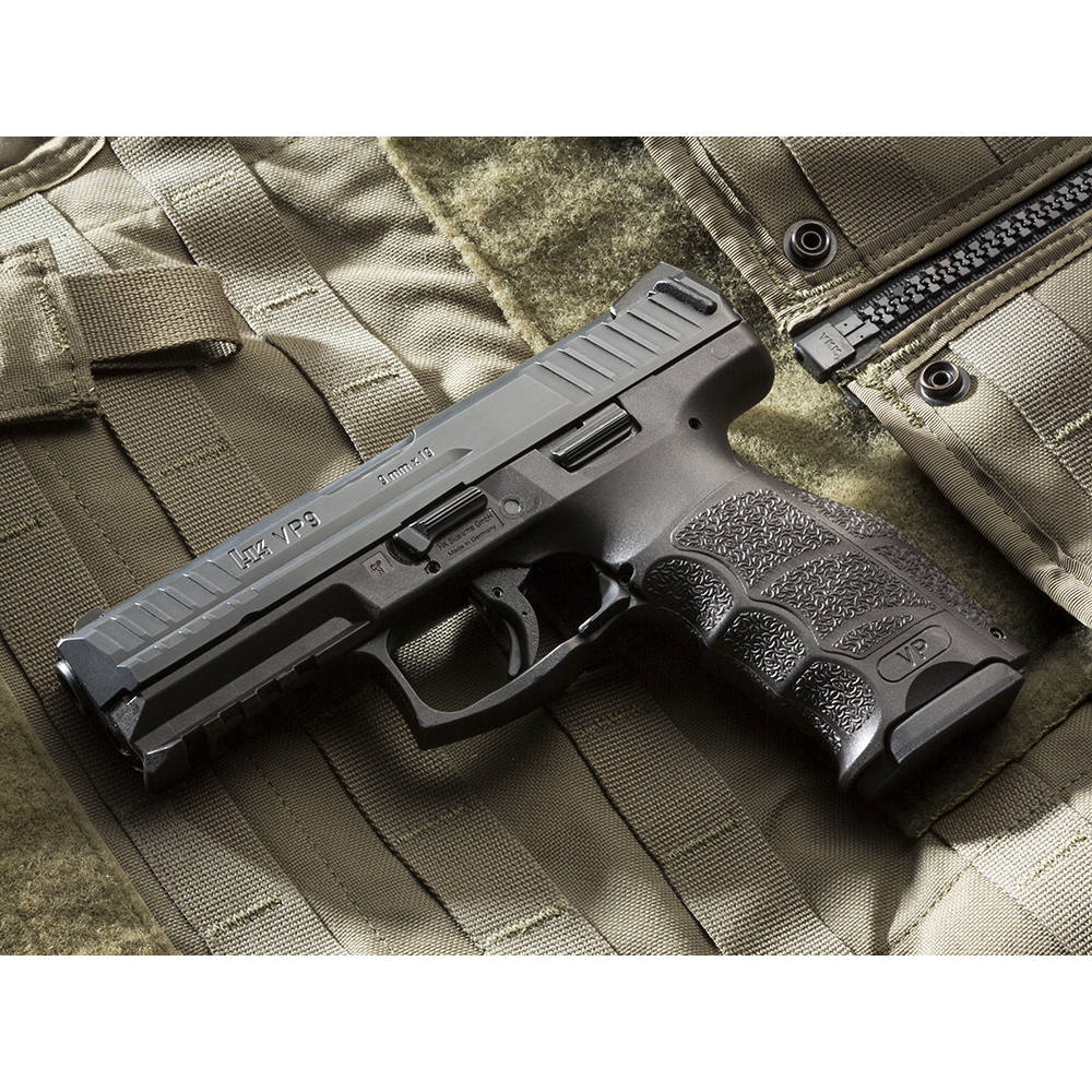 H&K VP9 Pistols • Advanced striker-fired slide design • Optimal light-pull trigger-control system • Customizable grip with three backstraps and six sideplates • Patented charging supports enhance leverage and grip for racking • All operator controls are ambidextrous • Extended Picatinny rail molded into the polymer frame Whether it's security, military, law enforcement or civilian sport shooting, step up to striker-fired perfection with H&K's VP9 Pistols. In development for more than four years, the VP9 is H&K's first striker-fired handgun since the P7 series was introduced in the 1980s. Its premium light-pull trigger has a short takeup with a solid, single-action-type break followed by a short, positive reset. Customize grip configurations by changing the three included backstraps and six included sideplates to accommodate various hand sizes. All controls, including the magazine and slide releases, are ambidextrous. Patented charging supports at the rear of the slide enhance leverage and grip for racking the slide, speeding up reloading and making it easier for shooters with reduced hand strength. Extended Picatinny rail molded into the polymer frame supports up to 5.6-oz. accessories. Proprietary captive flat recoil spring improves shooter control. H&K's Hostile Environment finish protects the steel slide from corrosion and wear. Heckler & Koch's limited lifetime warranty.
